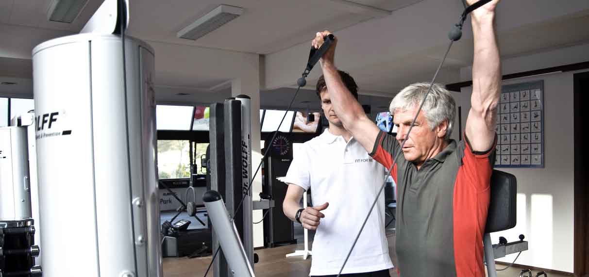 Durch seine Expertise an der Schnittstelle zwischen Fitness und Rehabilitation ist Fit for me die ideale Anlaufstelle für gezieltes Gesundheitstraining – sei es zur professionellen Fortsetzung nach einer Therapie oder zur gezielten Rehabilitation nach einer Verletzung.